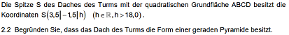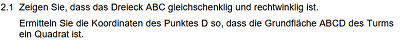 Punkt D lässt sich nun, da es sich um eine quadratische Grundfläche