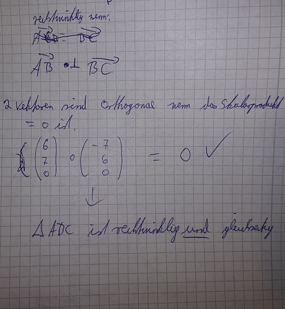 Um nun zu überprüfen ob das Dreieck auch rechtwinklig ist, bildet man