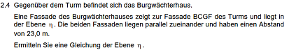 stellen wir die Ebenengleichung für die Ebene BCGF auf. Ich nehme